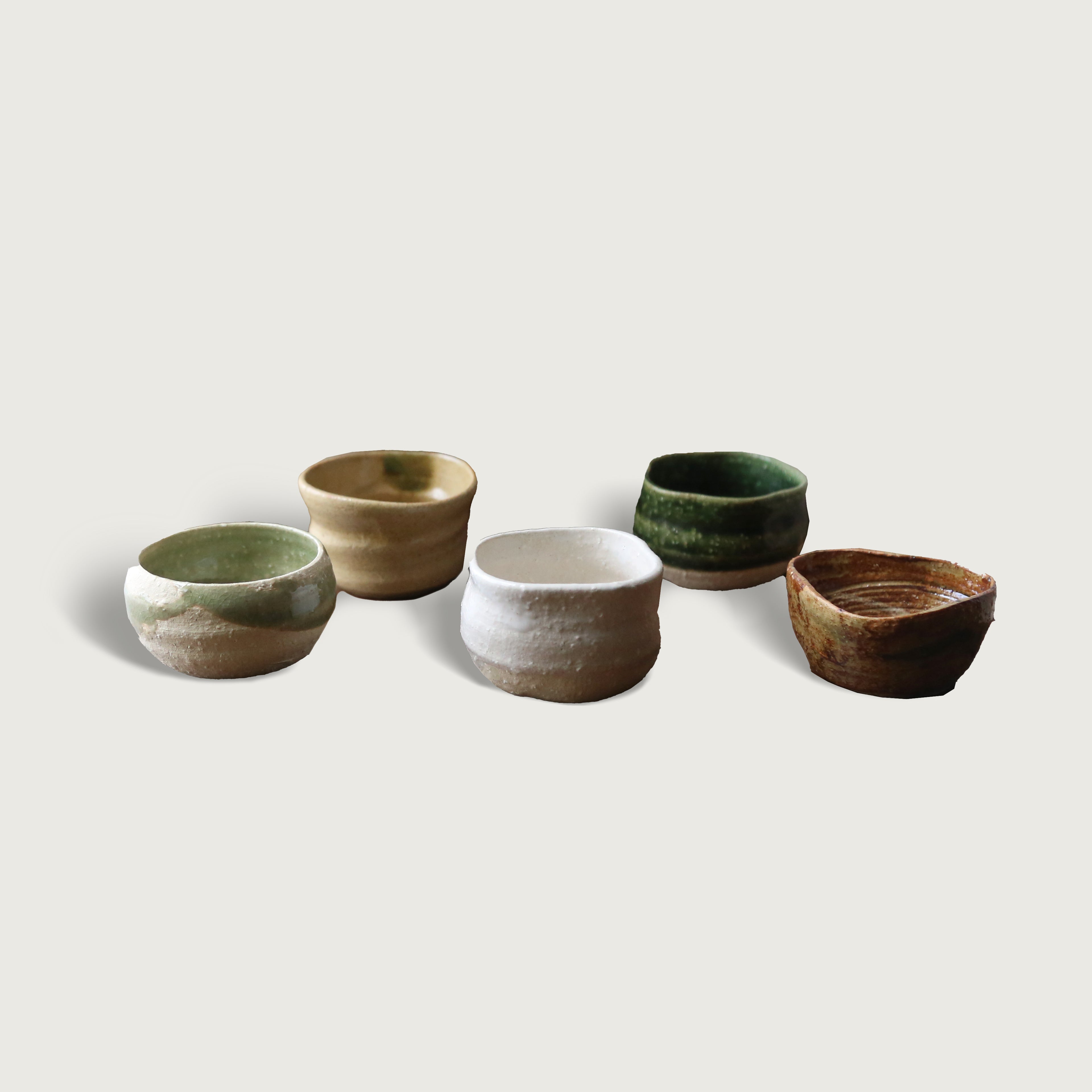 Discover the art of Japanese pottery with this exquisite set of five sake cups. Each piece is handcrafted by artisans in Gifu, a region famed for its historic Mino ware.