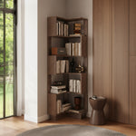 The 5 Tier Corner Walnut Bookshelf offers a smart and stylish solution for maximizing your living space.