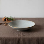 The Iroyu Unofu Deep Plate features a shallow, wide form that bridges the function of a plate and a bowl. Finished in a calm blue-grey glaze with natural undertones, its surface offers a subtle texture that complements both modern and relaxed table settings. Handcrafted with attention to detail, each piece displays gentle variations in tone and glaze, giving it a unique character. The depth makes it especially suited for pasta, saucy dishes, grain bowls, or small shared servings.