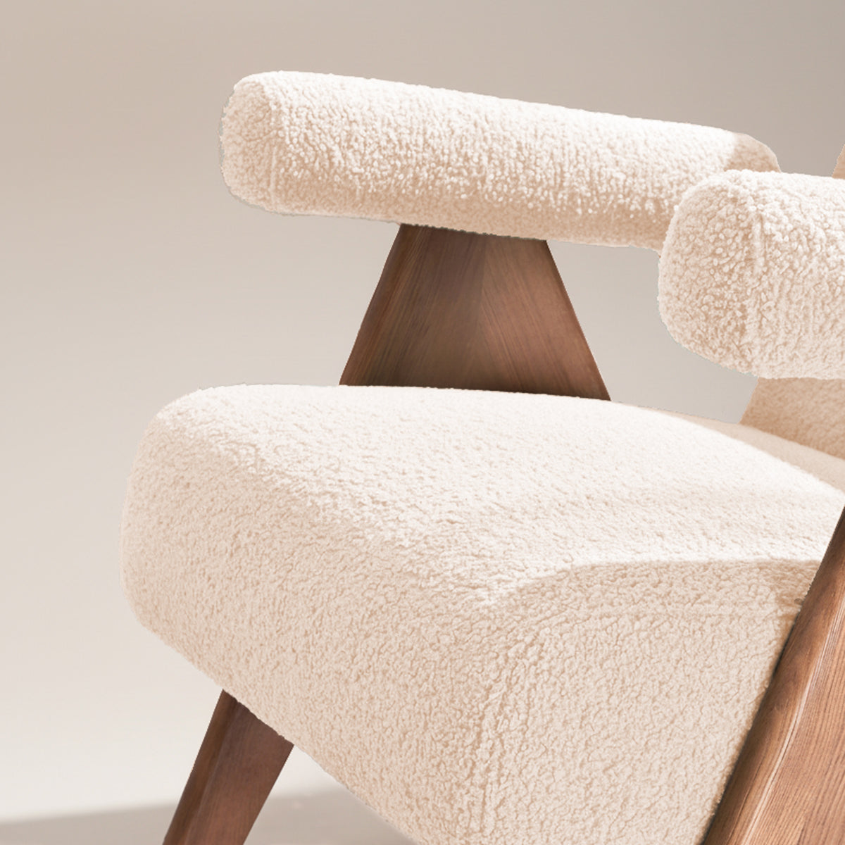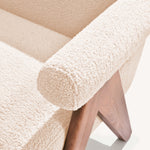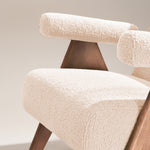 The Milo Armchair in Cream White offers a moment of pure tranquility and understated elegance. Its cloud-like bouclé fabric pairs beautifully with the solid wood frame, creating a timeless silhouette that is soft, airy, and effortlessly chic—a sanctuary of comfort for any modern home.
