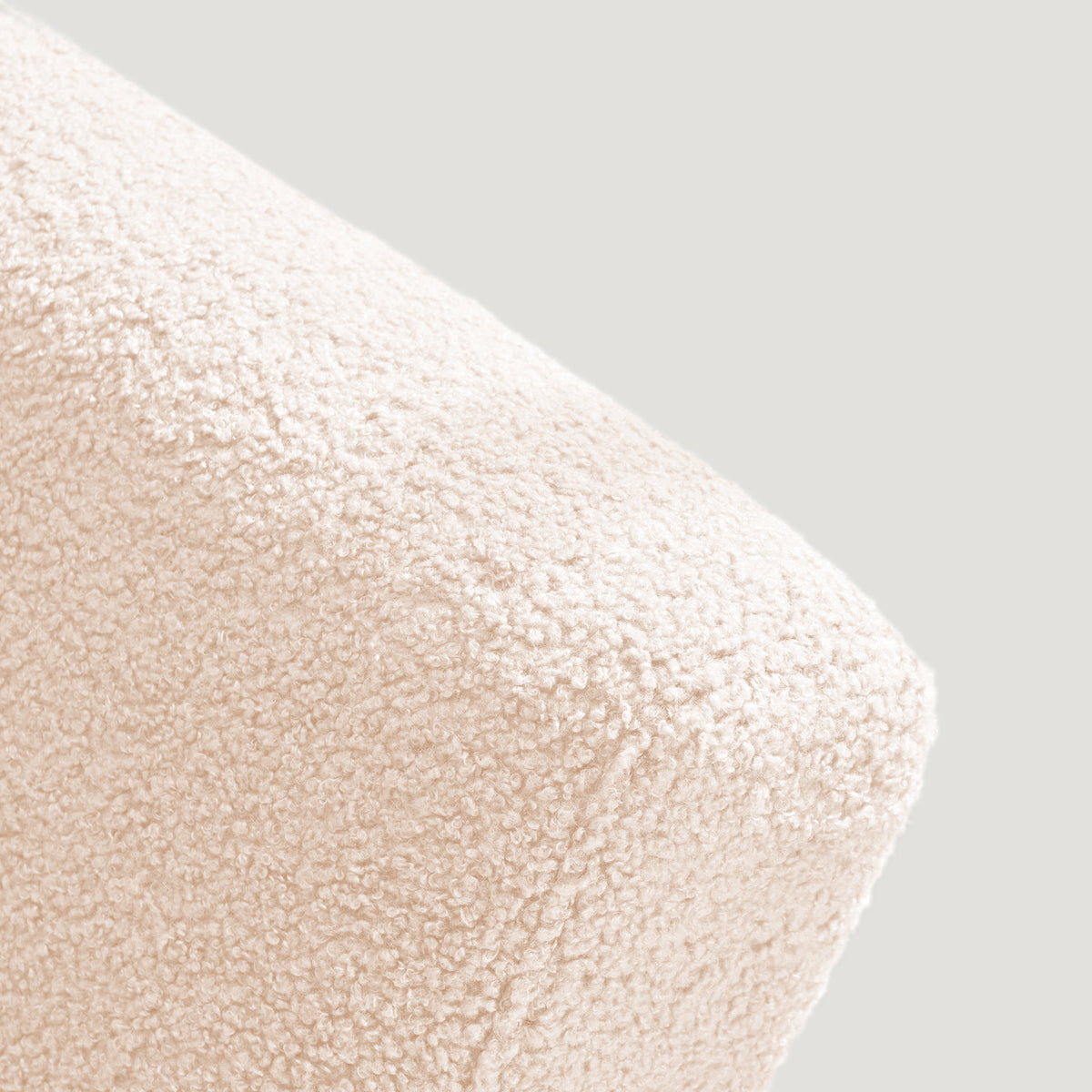 Plush Bouclé Fabric: Upholstered in a soothing, tactile bouclé, this chair offers an incredibly cozy texture that adds subtle warmth and sophistication to minimalist spaces.