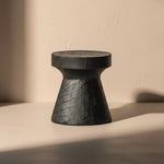 The Totem 04 Side Table in Black is a striking piece that blends sculptural artistry with functional design. Crafted from richly textured black wood, its distinctive hourglass silhouette creates a captivating focal point in any room. Perfect as a modern side table, a unique stool, or an intriguing decorative accent, it adds a touch of bold, minimalist elegance to your space.
