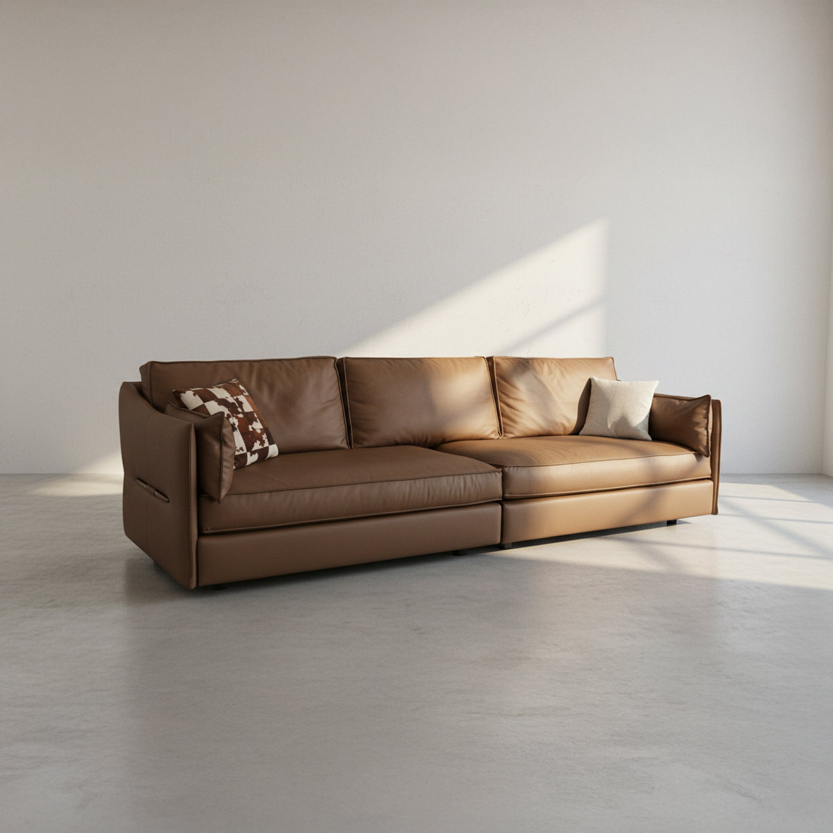 The Verona Sofa's warm brown tone and timeless design offer exceptional versatility. It effortlessly enhances a wide range of interior styles, from industrial and minimalist to transitional and classic, providing a chic and comfortable anchor for your living room, media room, or reception area.