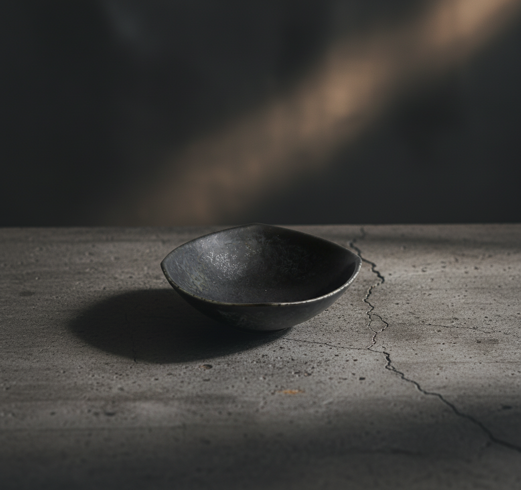 Embodying the spirit of wabi-sabi, this handcrafted black dish features organic curves and an earthy matte glaze that catches the light in subtle, imperfect ways. Compact yet striking, it’s the perfect accent piece for sauces, sides, or simply styling your table with quiet elegance.